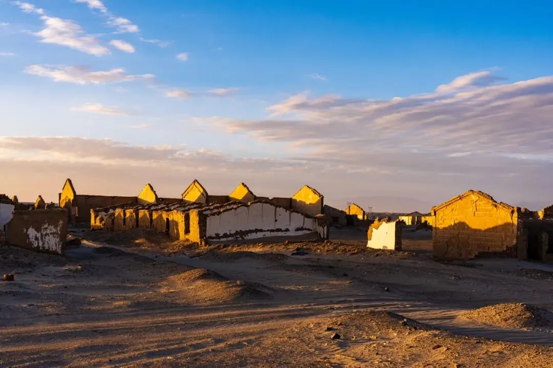 车轮继续向前,风景再次切换。冷湖石油小镇遗址🏭在戈壁深处静默伫立。倒塌的墙壁、褪色的标语,冲满故事感的工业废墟,每一帧都是情绪大片,堪称废墟摄影爱好者的天堂。