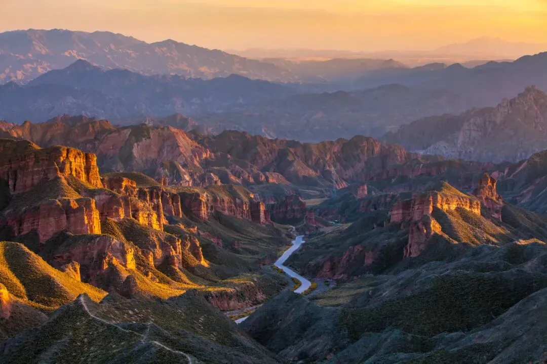 紧接着,是丹霞地貌的两种极致表达。在坎布拉国家森林公园享碧绿黄河水与赤红丹霞山交织的静谧画卷;另一处冰沟丹霞,则以奇特的窗棂状宫殿造型取胜,在夕阳下呈现出凌厉的赤红色,人流量仅为七彩丹霞的零头,是摄影爱好者不愿声张的出片宝地。