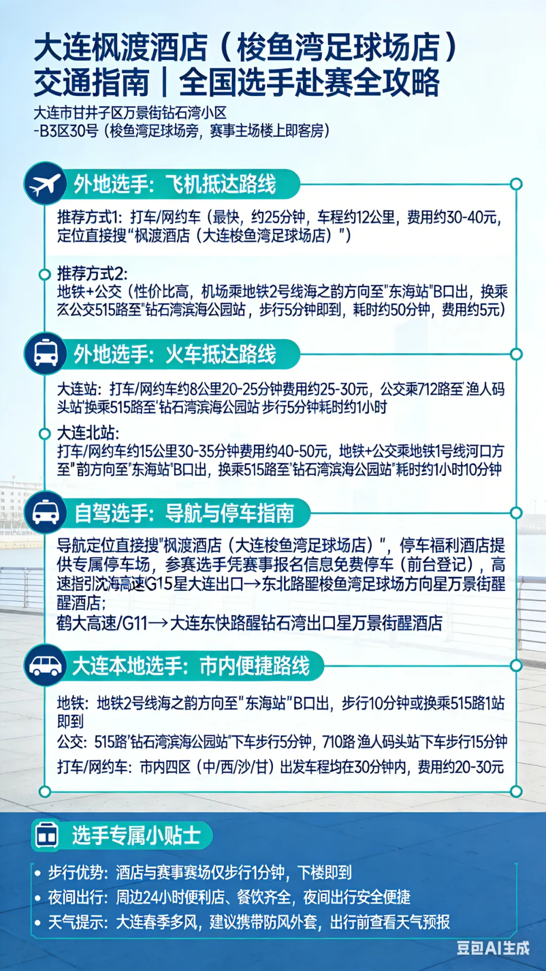 在激烈竞技之余,不妨漫步大连街头,感受山海的浪漫与风情。这份专为参赛选手准备的大连游玩攻略+赛事酒店交通指南,让你参赛、打卡一站式搞定!
