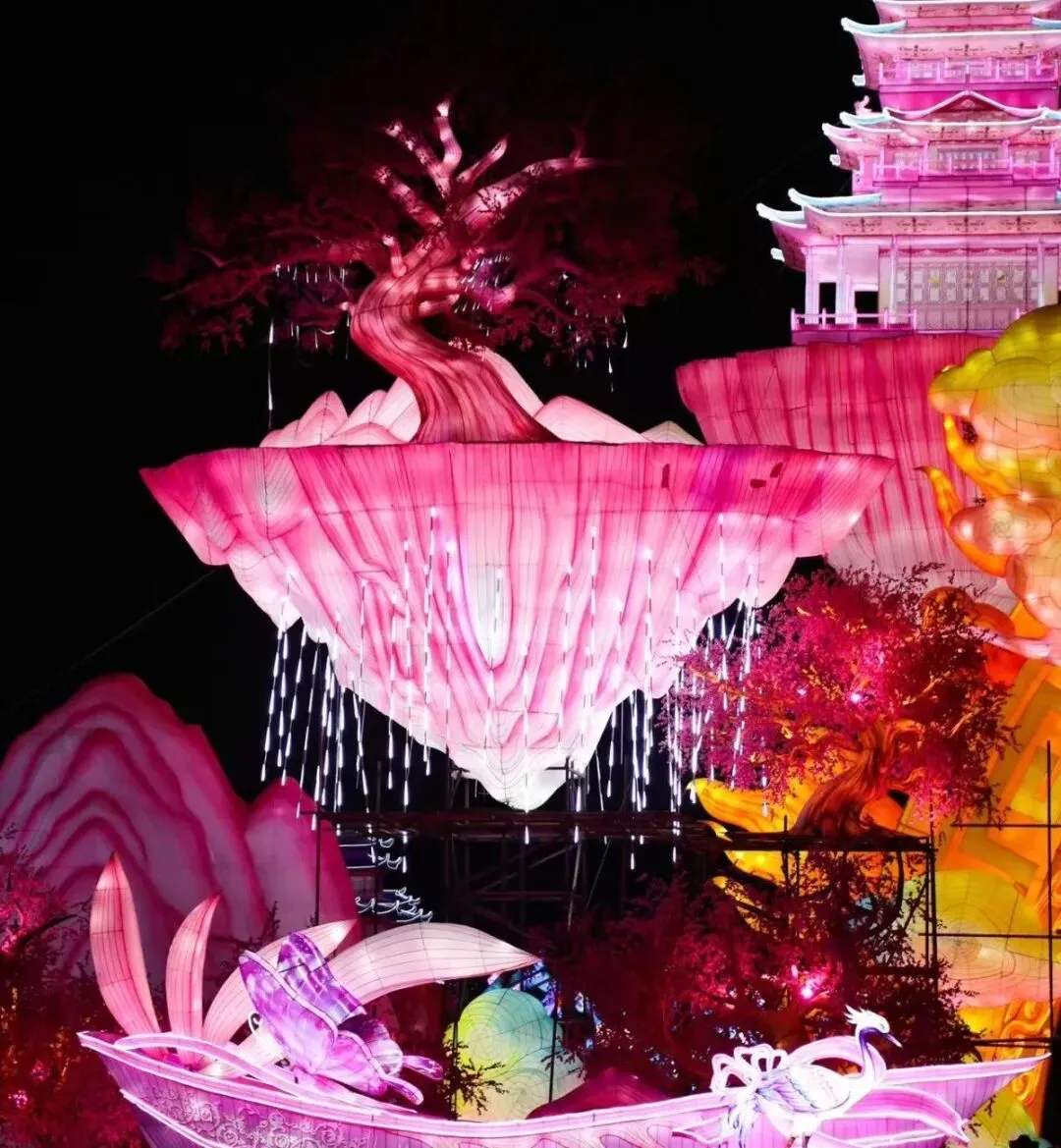 三月的园博苑便是花的海洋,百花争艳、次第绽放,山樱花清新淡雅、桃红彩楠绚丽多姿、无忧花亭亭玉立,交织成一场缤纷的视觉盛宴,更铺就出新年的祥瑞底色。待到夜幕降临,园博苑内的灯组便会次第点亮,万千花灯流光溢彩,为这片春色更添浪漫与喜庆。