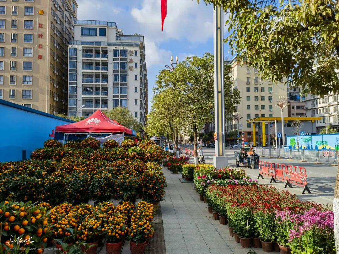 中午回家的路上都让人分外的欣喜,寒潮带来的降雨和降温过去后,天上飘浮着朵朵白云,天空一片蔚蓝。园区外的大街上,街道举办的花市土味十足,又带着浓烈的生活气息和年味