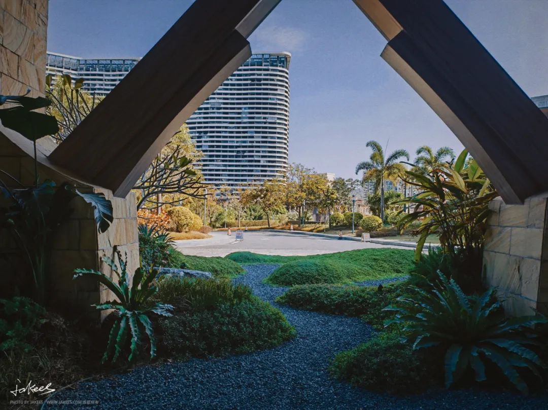 酒店门口造景,颇得我心意。对面一片片的高楼,正是保利金町湾。绝大部分买下来的房都变成了民宿托管。而山坡下,还有一片片两三层的小别野。不过很可惜,他们都不如老婆的法眼。之前在阅读住店者评论攻略时,就以卫生条件不佳的缘由惨遭淘汰出局。