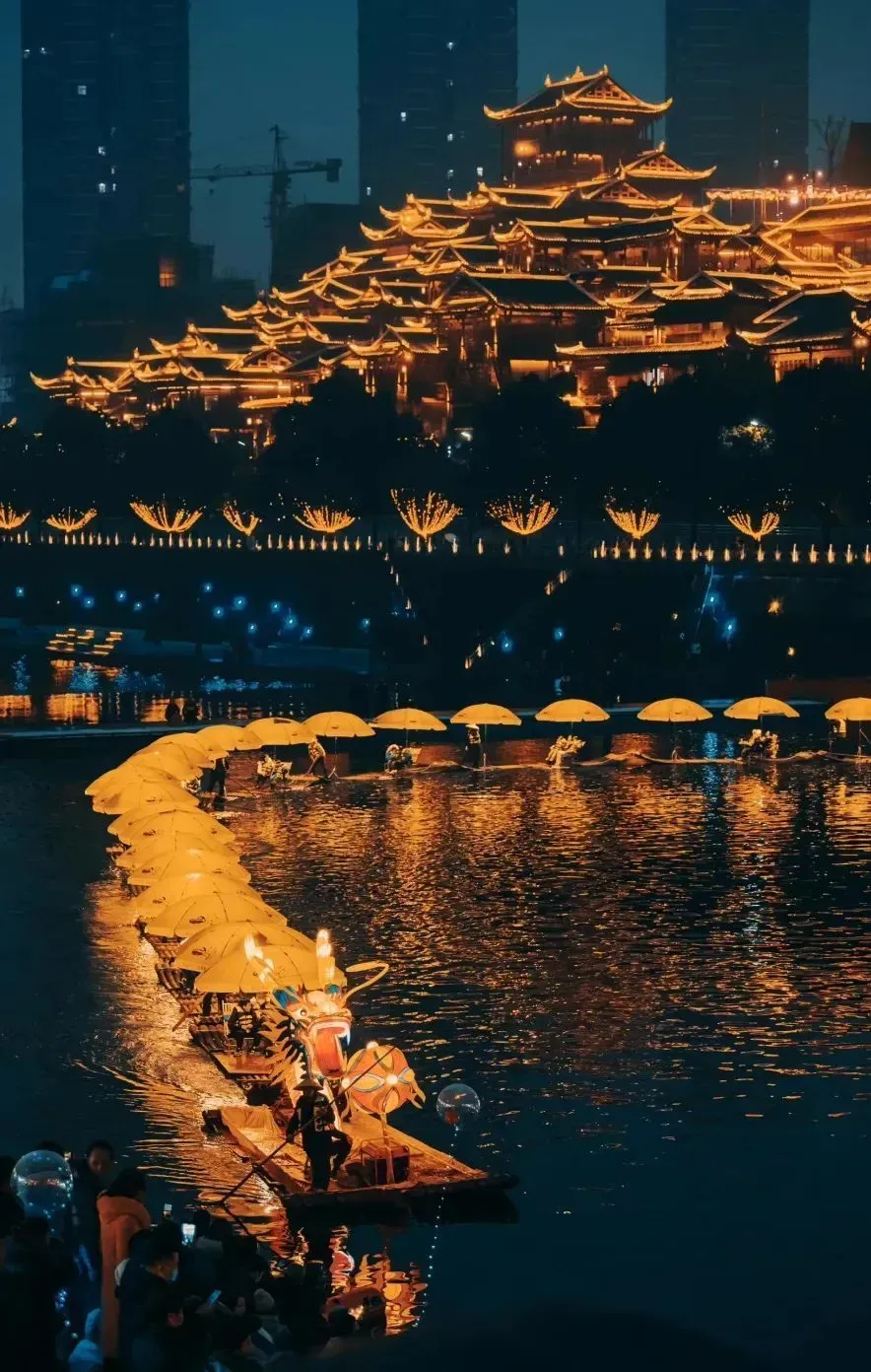 夜幕降临,藏在大山深处的一座“仙府”你听说过吗?电影里的梦幻之城,小说里的异域世界……万般想象。七点以后,当灯点亮贡水河畔,灯影梦幻,观者如市,满城欢声笑语。华灯映水,龙舟凌波,一城璀璨灯火。