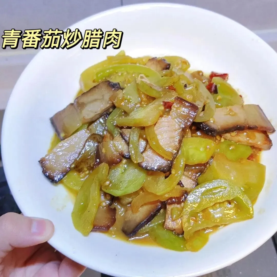 青番茄炒腊肉 我心中的封神小炒! 青番茄酸爽解腻,腊肉软嫩带奶香,配米饭我能直接干两碗。