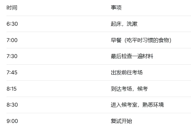问清楚早餐几点开始(如果复试时间早,可能需要提前打包)