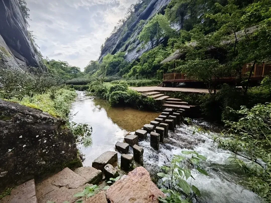 3.岩骨花香漫游道(大红袍 — 水帘洞段)全程平缓石板路、几乎无台阶,约 3 公里,沿途茶园、溪流、古寺,茶香清幽,走累随时可停,老人轻松走完。