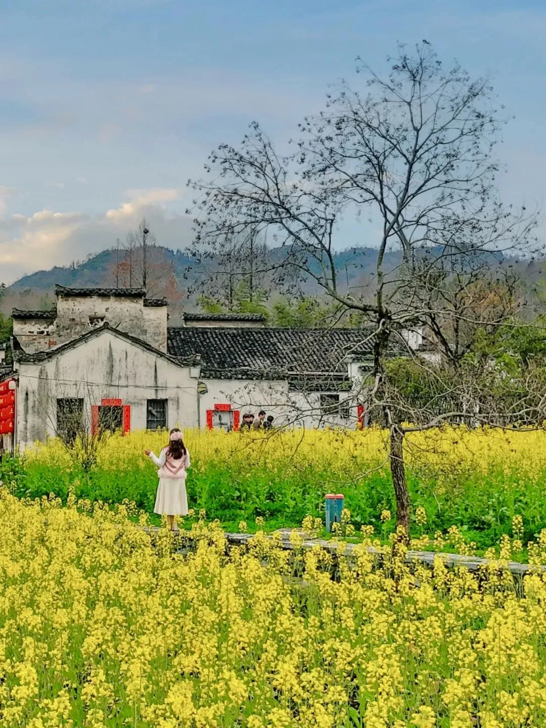 金黄花海+白墙黛瓦,搭配徽州春日标志性机位,春日限定大片。