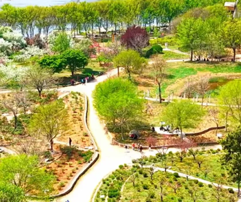北方植物园是一处小众又治愈的休闲景点,位于濯村东面的河滩之上,这里绿树成荫,繁花似锦,开阔的格局尽显豪放大气,清新的空气夹杂着馥郁的花香,让人心情舒畅、心旷神怡。植物园的设计独具匠心,就连园内的房屋都充满了异域风情,沿着蜿蜒曲折的小径前行,各种珍稀花草树木映入眼帘:深红的红枫、翠绿的女贞、盘曲的龙爪槐、高大的菩提树……更有珙桐、杜仲、青钱柳、银雀等国家级保护植物在这里茁壮成长、枝繁叶茂,是亲近自然、欣赏绿植的好地方。