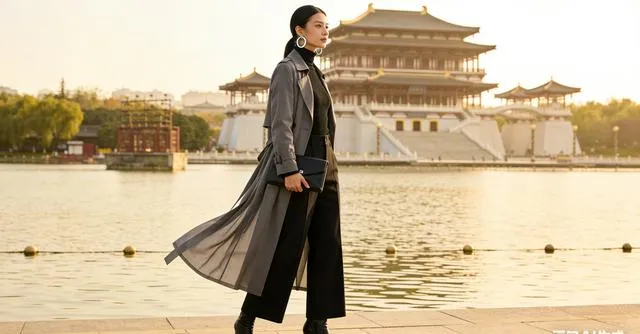 以前我迷信全身同色系最安全,结果在满眼新绿的茶园里,穿一身苔藓绿风衣,直接隐身。现在我的方法是:用80%的邻近色打底,剩下20%留给一个惊喜。比如内搭鹅黄连衣裙,外面披件卡其风衣,风衣扣子解开,裙摆和袖口露出那抹鹅黄,像剥开豆荚突然见到嫩豆。这个“跳脱点”控制在一个手掌的面积内最安全,在领口、袖口、或是一截袜子边缘出现,拍照时无论怎么动,这点颜色都能把你从背景里轻轻推出来。