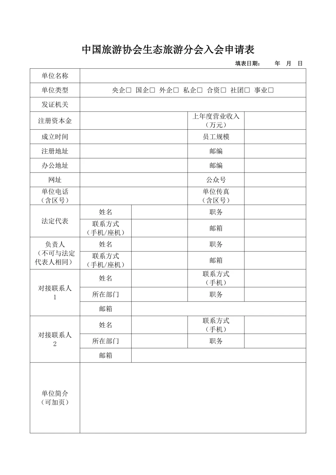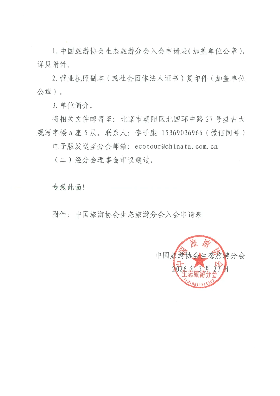 1.中国旅游协会生态旅游分会入会申请表(加盖单位公章),详见附件。