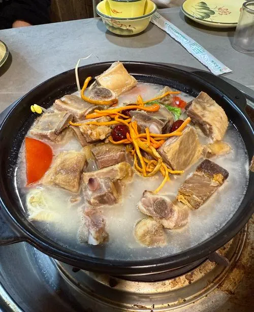 腊排骨火锅是必吃的,但古城里那些店大多是坑游客的,真正本地人吃的是在象山市场附近那几家,钰洁腊排骨、阿妈腊排骨都行,五十块钱一锅够两个人吃,排骨是腌过的,有点咸,但配上土豆和青菜一起煮,那个汤鲜得很。还有黑山羊火锅,在金凯广场那边有一整条街,随便挑一家都不会差,羊肉没膻味,蘸着薄荷水吃特别香。