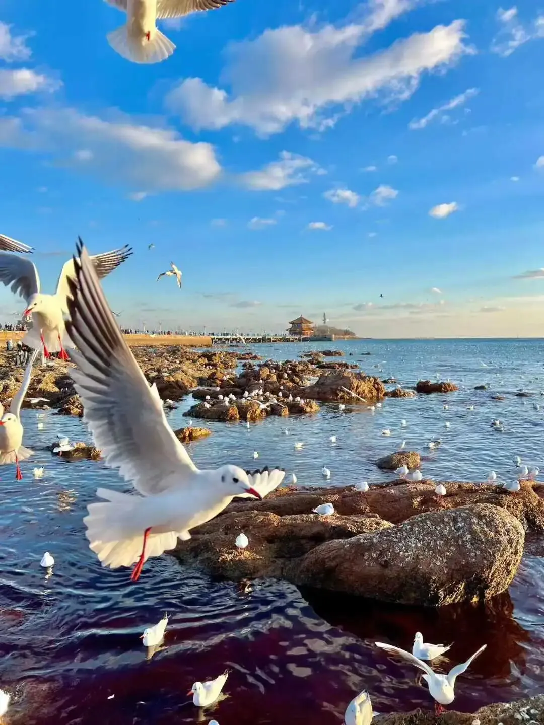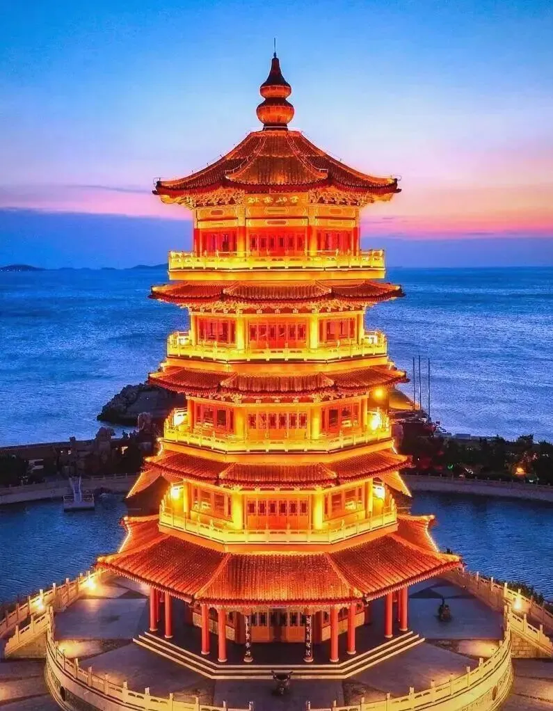 亮点: 海上仙山!红墙黛瓦映着碧海蓝天,美得像画🏞️。