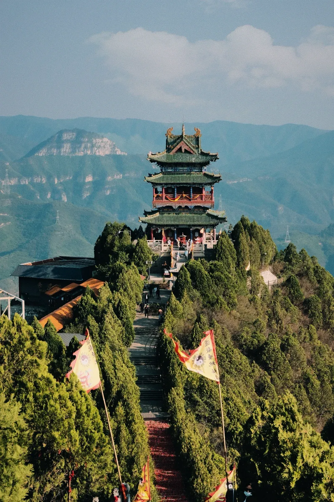 🌟 推荐理由:喜欢登山赏景、想感受佛道文化的朋友,这里一定要来!珏山又名角山,主峰海拔973米,双峰对峙如双玉耸立,自古就有“晋魏河山第一奇”的美誉,“珏山吐月”更是晋城四大名胜之一,中秋之夜月光洒在双峰间,清辉满溢宛如仙境。