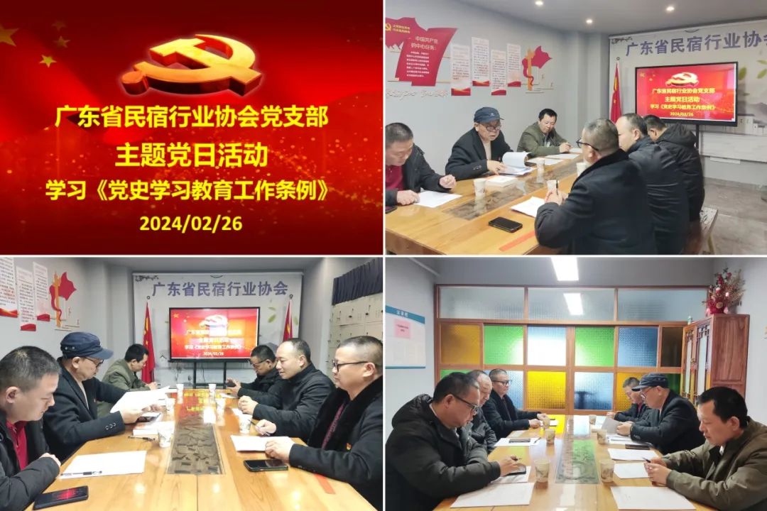 2024年2月26日上午,广东省民宿行业协会党支部在协会党员活动室举行了主题党日活动。本次活动由支部书记肖菁华同志主持,党员杨正华、宋能旺等同志参加,协会领导和入党积极分子杨虎、姚显涛、黄子福等同志列席。本次主题党日活动是根据党支部全年党建工作计划,提前布置并做了充分的准备,活动内容丰富多彩,超出了预期效果,提振了同志们争创“四强”党支部的信心。
