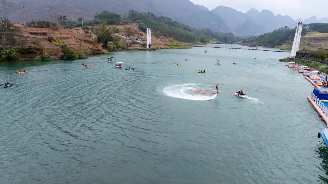 广西五星级乡村旅游区,坐落于大化北景镇红水河畔。坐拥 88 个浮桥钓位,渔具齐全、鱼种丰富,曾举办多届中国 — 东盟千人垂钓大赛。集垂钓、餐饮、住宿于一体,山环水抱,是渔乐休闲、亲近自然的绝佳胜地。