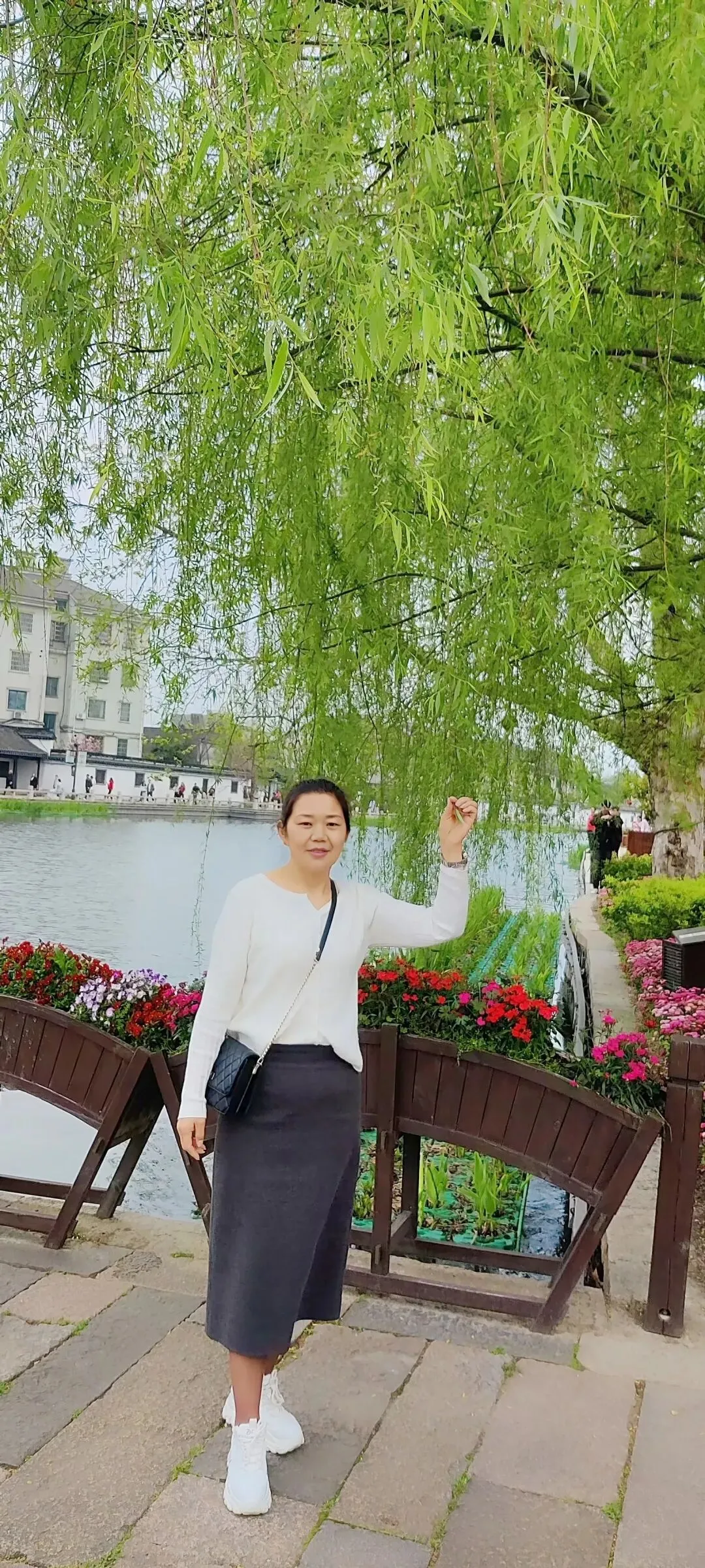 4. 小河边垂柳青青,微风抚面,不由几分惬意!