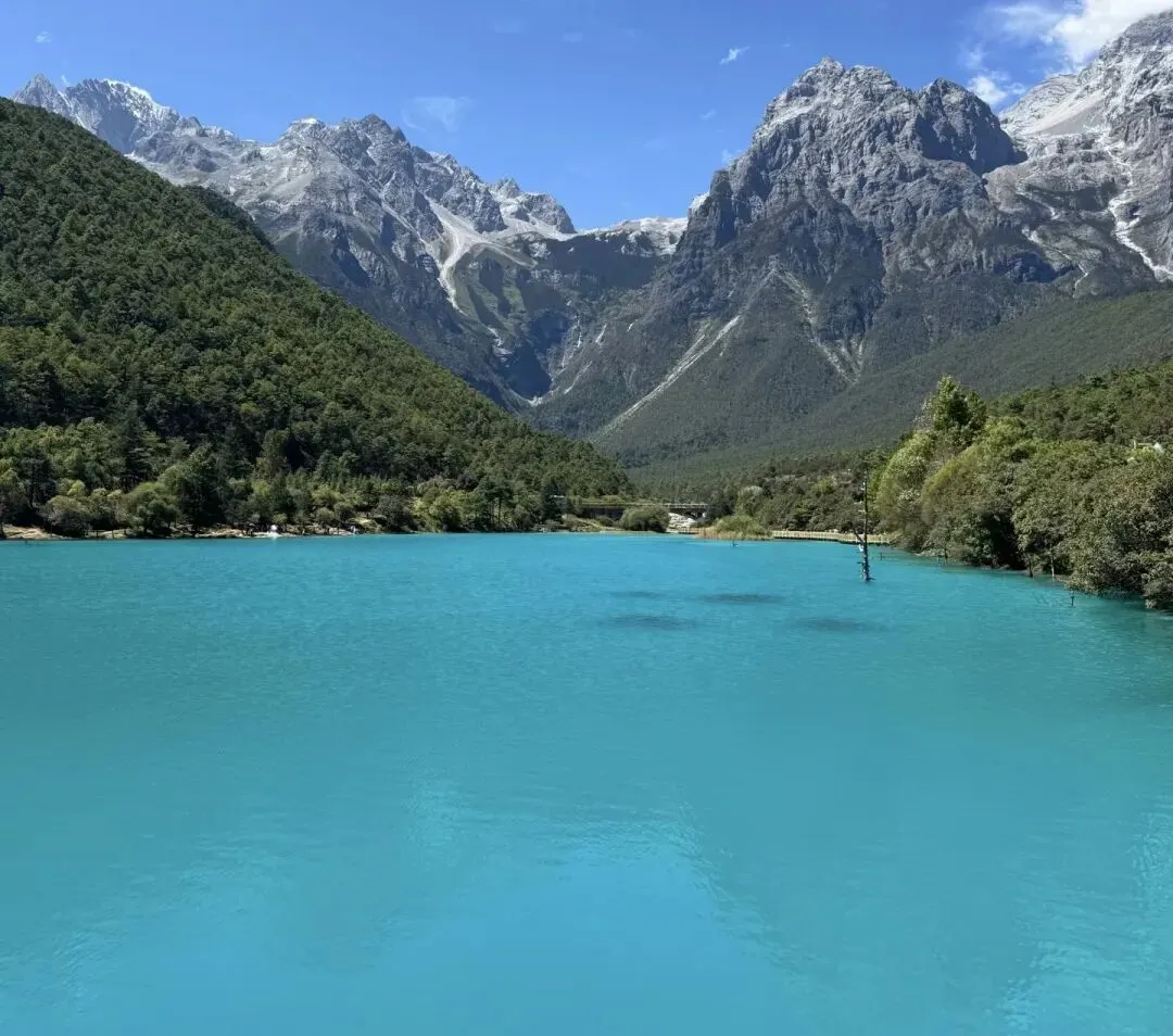 蓝月谷也是玉龙雪山景区的核心景点之一,单独拿出来介绍,是因为也非常推荐,尤其是光线充足的情况下,该景点因湖水湛蓝如宝石、山谷形似月牙而得名,被誉为"散落在人间的蓝宝石"或"小九寨沟"。