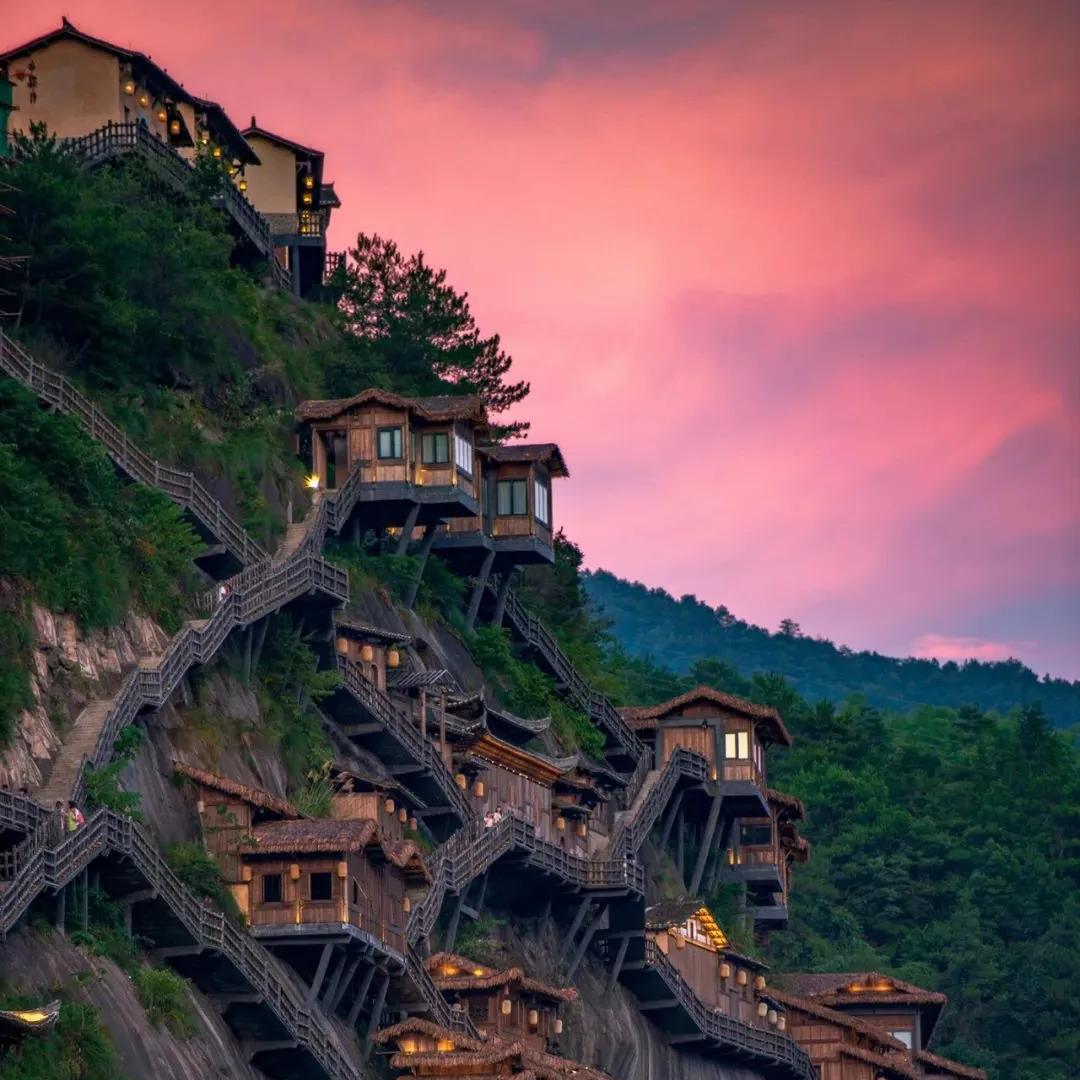 前往江西全新打卡、抖音热门景区——【望仙谷】(游览约 2 小时)【青云桥】这是一座单拱钢结构大桥,跨度35米。【寻仙路】过了青云桥,再踏青云梯,从此鸿运当头。【廊桥】沿河而建的这座建筑叫廊桥,是典型的江西风雨廊桥的形态,桥体采用了抬梁式架构,在立柱上架梁,梁上又抬梁,层层叠落一直到屋脊,各个梁头上再架上檩条同来承托屋椽,结构和工艺十分复杂【三叠水】前方的峡第谷是两条溪交汇的地方,一条是发源于高南峰的西坑溪,一条是发源于西高峰的方村溪。【白鹤崖】望一仙谷的传奇故事就是从这里开始的。上古传说“女娲补天”。共工和祝融撞倒了不周山,天破了个大窟天窿,女娲修炼五彩石去补天。夜游望仙谷在夜幕的灯光下的望仙,灯光璀璨,流水潺潺,美伦美幻,完全不一样体验。游览结束后乘车前往三清山,入住酒店。