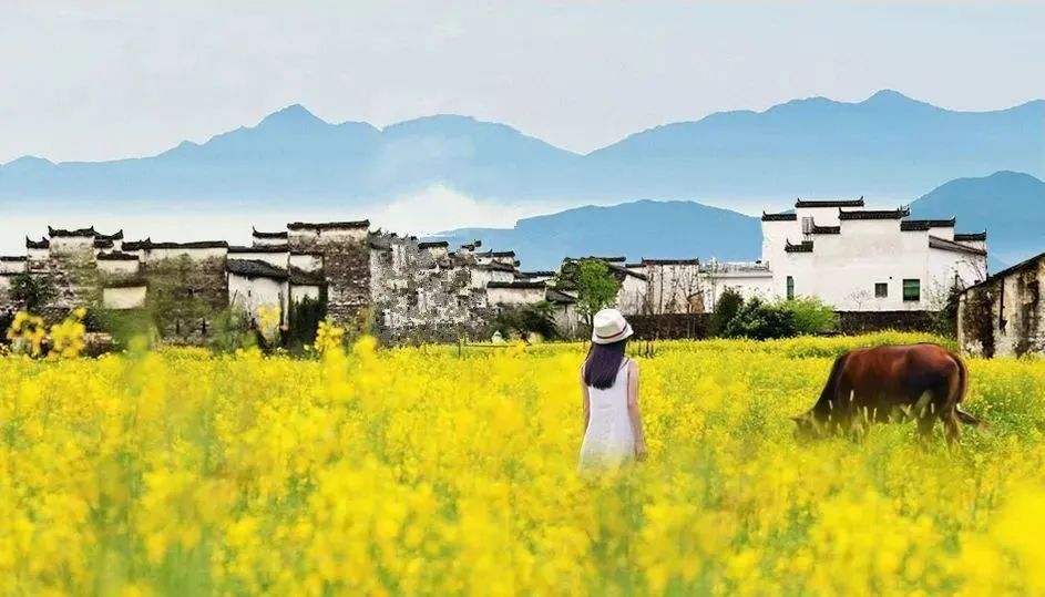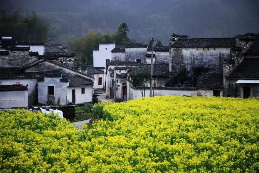 粉墙黛瓦的民居和金灿灿的菜花浑然天成