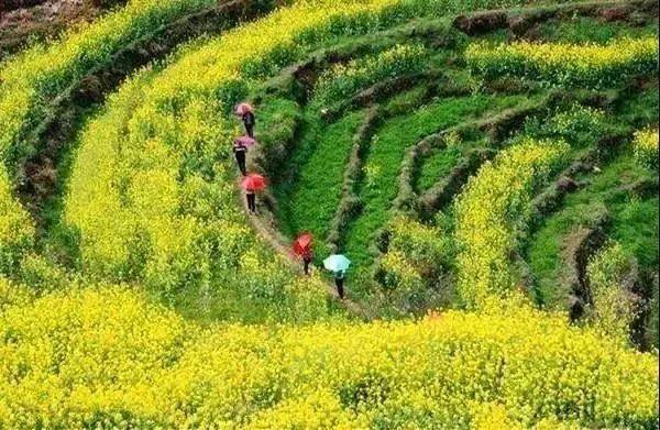 每当春暖花开时,置身于【江岭万亩梯田】中,黄灿灿的油菜花与远山、近水、粉墙、黛瓦相映成趣,构成一幅天人合一的画卷,黄灿灿的十万亩梯田油菜花,使江岭成为婺源春天的宠儿,同时这里也是全国最具视觉冲击力的油菜花观赏地。