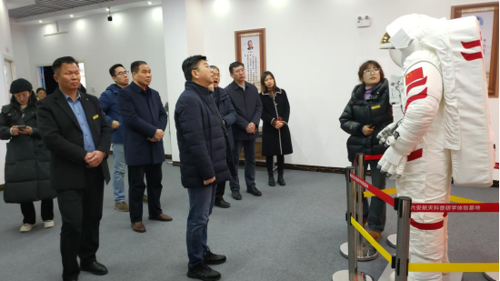 淄博考察团一行首先满怀兴致地参观了航天科普研学基地和国学研学基地,对部分航天体验项目进行了沉浸式体验,对国学研学基地“四大发明”实践项目和皋陶五礼文化及皖西地方文化给予高度赞赏。