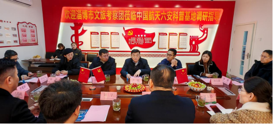龙腾云天兆喜事,雪映丽日满眼春。元宵佳节刚过,淄博市文旅考察团一行在市文旅局党组副书记、副局长严旭的率领下,踏雪千里,于2024年2月27日下午莅临安徽航科教育科技有限公司旗下中国航天六安科普基地暨国学研学基地,考察调研、对接谋划航天科技研学项目合作。六安市政协常委、中国民进促进会六安市主委王务兵,六安市招商局副局长刘宇,金安区文旅局副局长叶玉玲,安徽航科教育科技有限公司董事长陈传军,中国航天科工三院航科公司及中科协惠农公司方面负责人陪同考察。