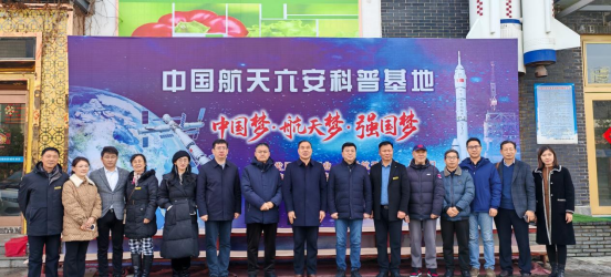 参会双方在航天科普研学基地打卡墙前合影留念。