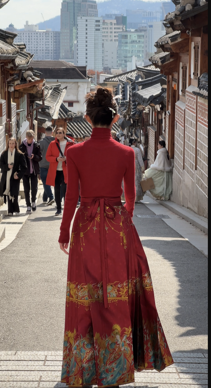 她还配文「马面裙,了不起的中国文化。」