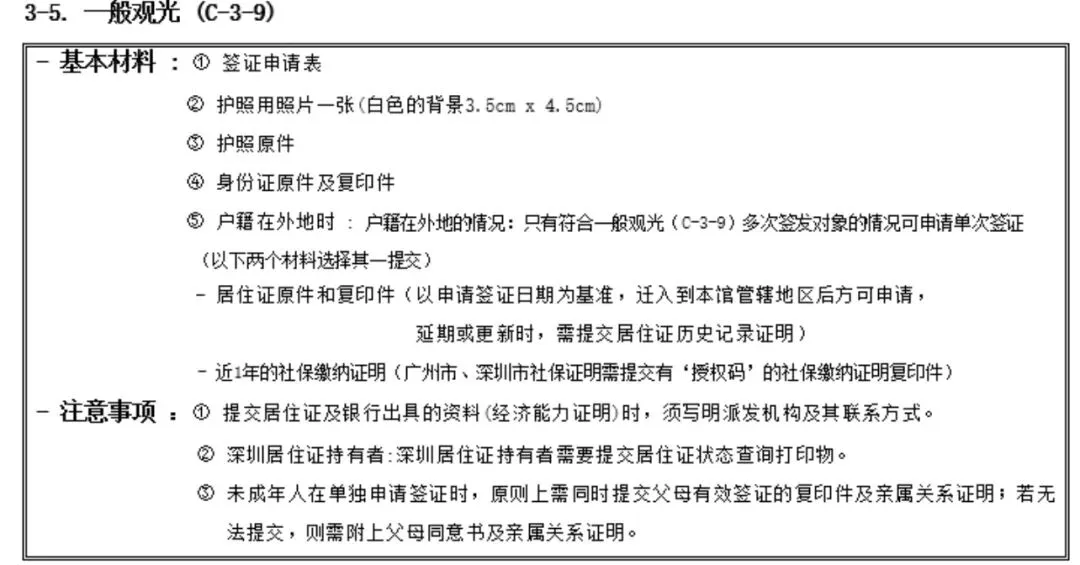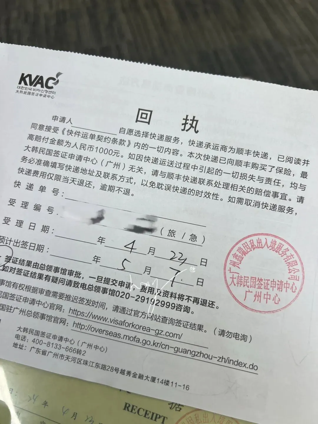 广州韩国签证中心可以找旅行社,也可以自己办现场办。 广州中心有段时间是可以自行寄材料过去就能办,现在还能不能要自己在广州签证中心公众号查证一下哦。 我是24年办的5年签,那时候回广州看望亲人顺道亲自去广州的签证中心现场办理的。资料提交后5个工作日签证就下来了。签证下来之后邮寄回来的费用是50,不邮寄让亲人去取的话,需要写一个委托书,太麻烦了还是邮寄方便。 自己现场办理攻略: 广州大韩民国签证中心办公时间及地址 签证申请:09:00~16:00 (中午不休息) 普通签证申请护照领取时间:09:00~17:00 加急签证申请护照领取时间:14:00~17:00 (工作日周一至周五) 地址:广州市天河区珠江东路28号越秀金融大厦14楼11-16单元(导航搜索“大韩民国签证申请中心广州中心”) 交通:地铁地铁18号线冼村站G口(我是打的去的,可自行地图一下) 签证需要两部分材料: 1是基础材料,2是要求材料。 要求材料根据你所符合的资料提交就行了。 带去签证中心的材料清单(C39五年多次) 基础材料如下图: