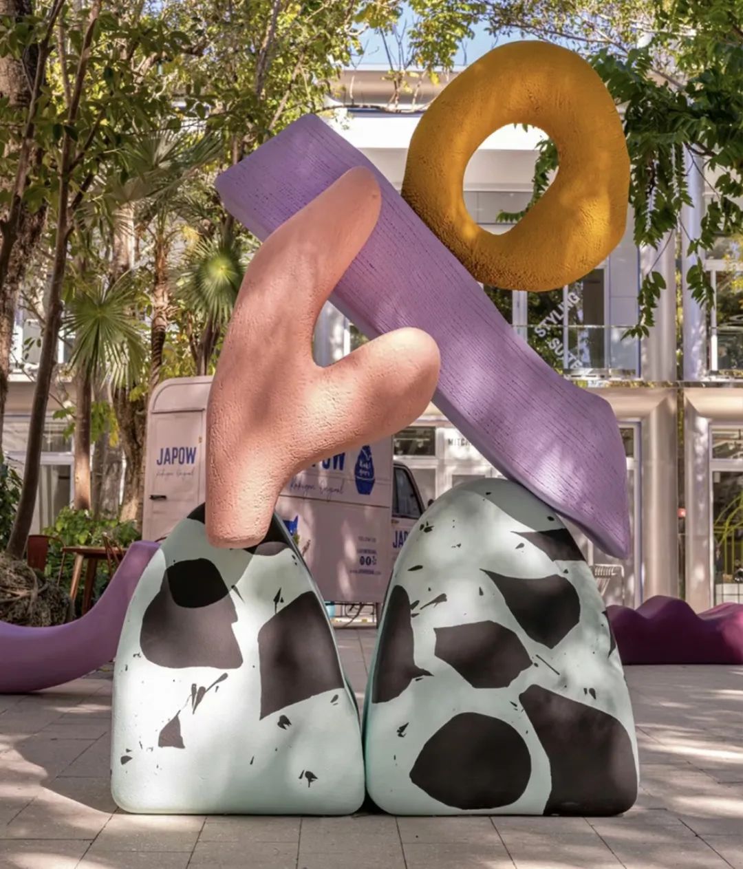 这个独特的创意将整个迈阿密设计区变成一个绚烂的糖果色世界,在这个巨大的雕塑群落之间穿梭,你会被激动人心的色彩流所包围,仿佛置身于一个充满艺术的轻愈世界。