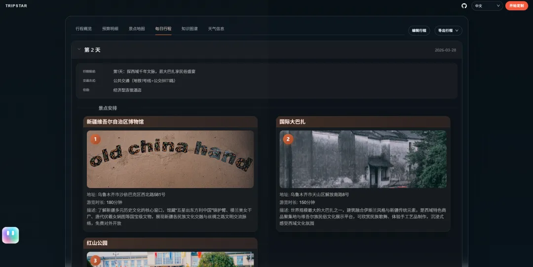 一站式旅游攻略制作工具:旅途星辰 (TripStar) - AI 旅行智能体自动生成行程与可视化地图路线