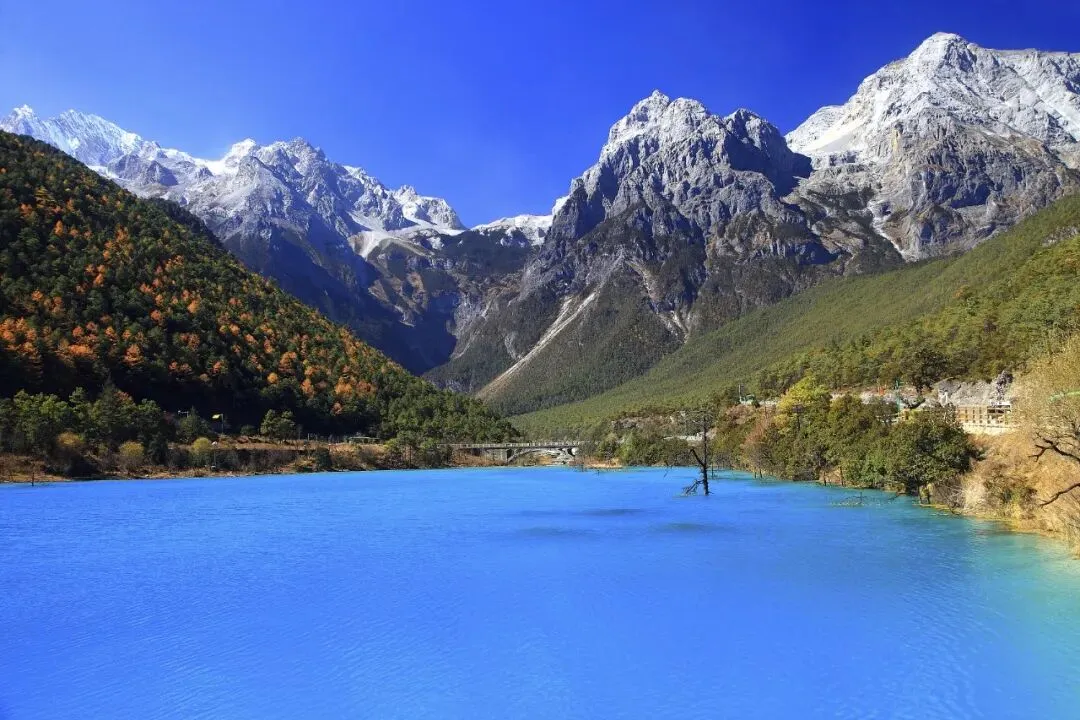 蓝月谷:湖水蓝绿相间,如“三生池水”般梦幻