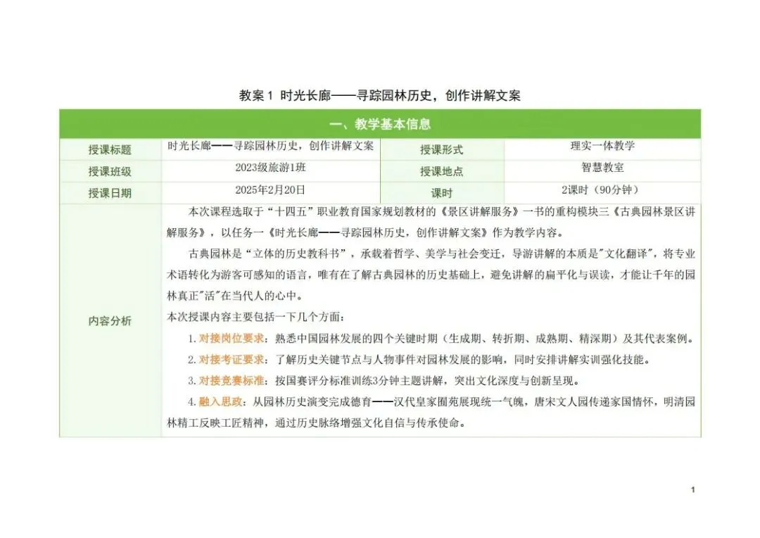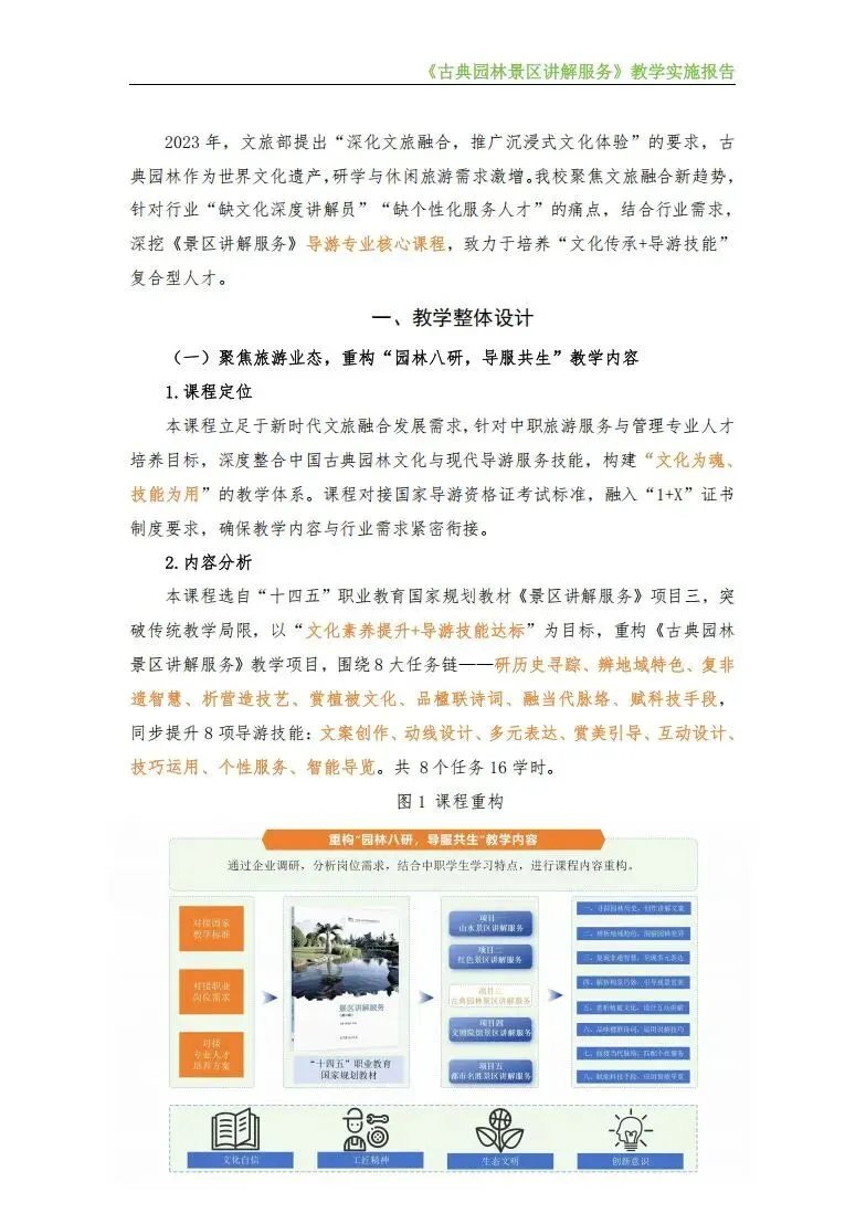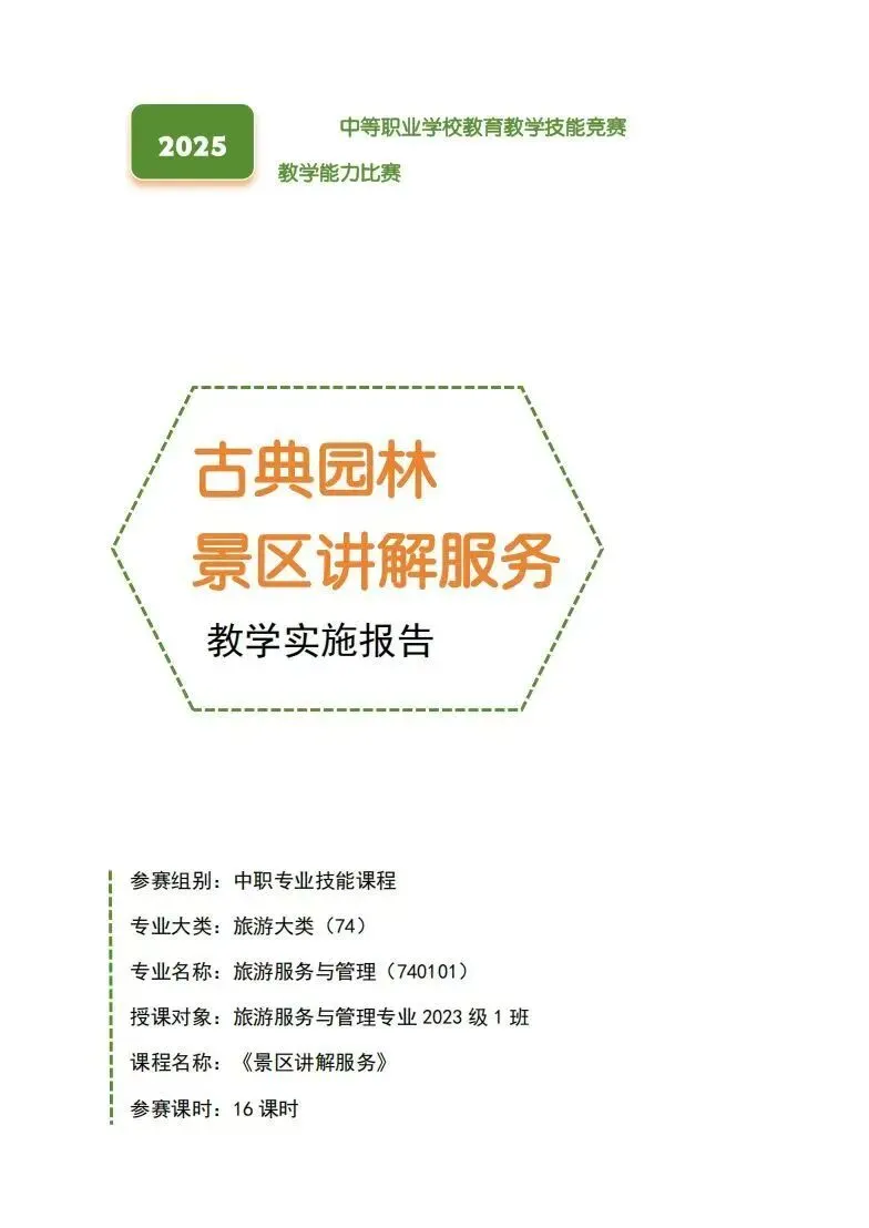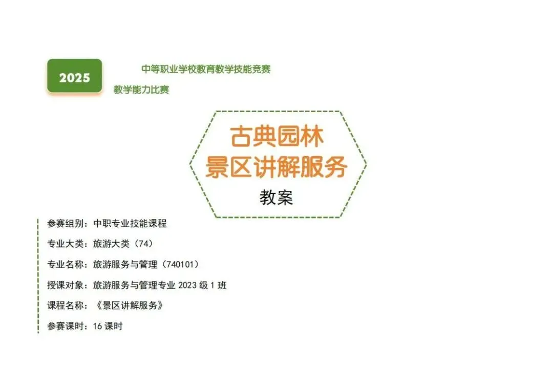 旅游大类-教学能力大赛比赛丨2025年省赛二等奖《景区讲解服务》服务与管理专业《古典园林景区讲解服务》教案实施报告!