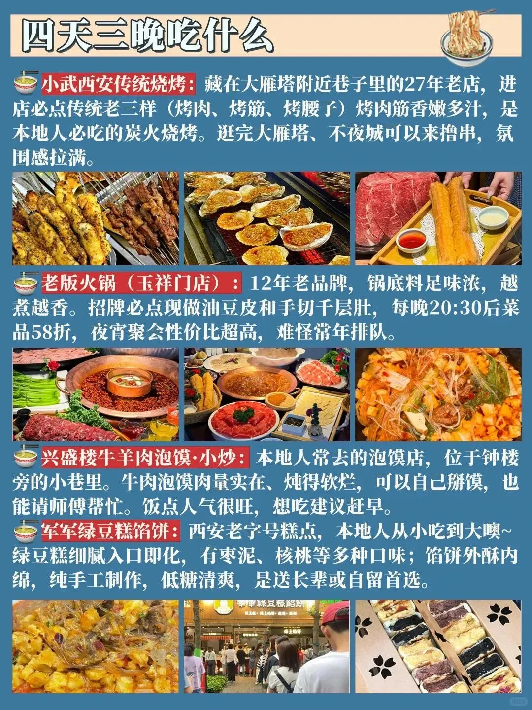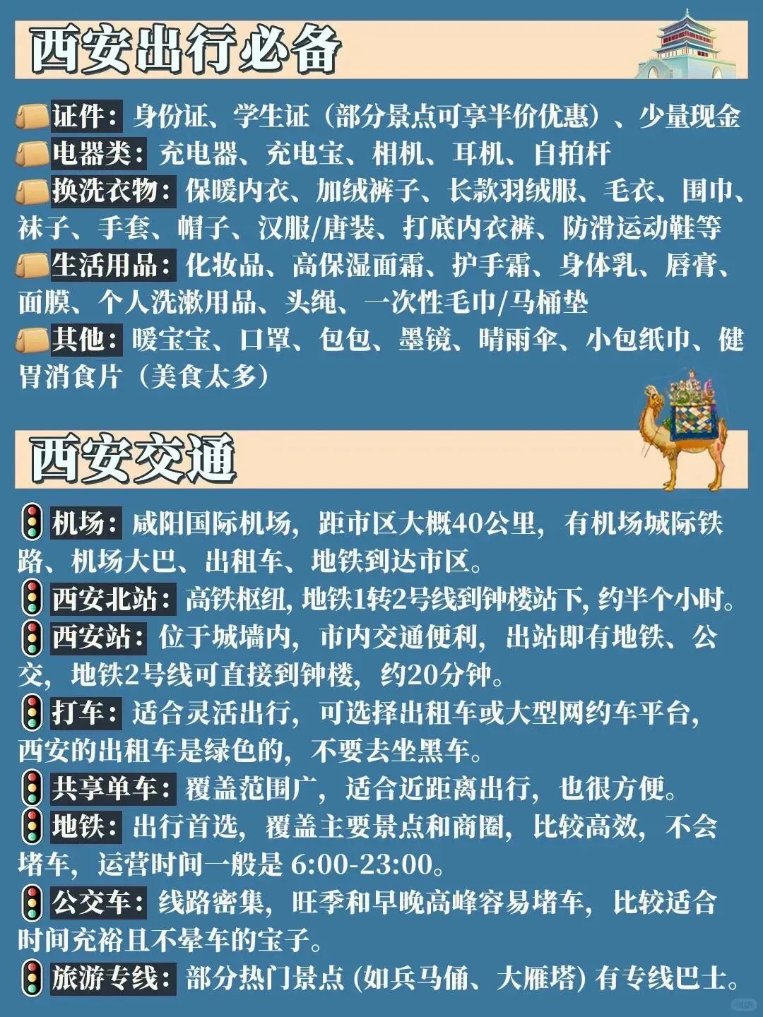 #西安2-3月旅游攻略|4天3夜玩转长安 1️⃣ 必去景点:钟楼、鼓楼、西安城墙、兵马俑、大雁塔。 2️⃣ 美食推荐:老版火锅、兴盛楼牛羊肉泡馍。 3️⃣ 出行准备:身份证、保暖衣物、充电宝。