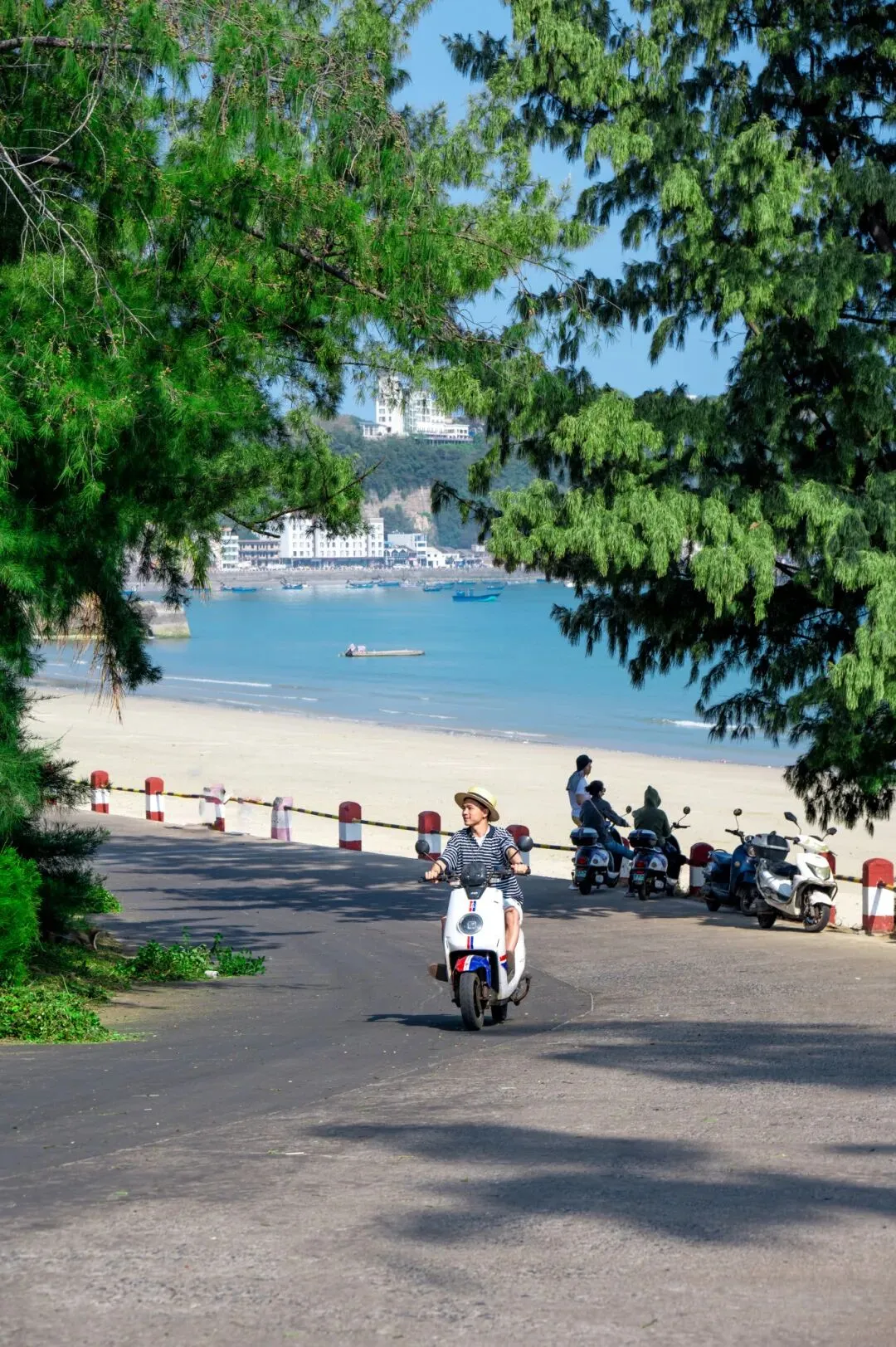 用骑行的方式打开贝壳沙滩,你会解锁这个神级宝藏机位,在树下乘凉看海发呆,感受海岛的慢节奏~