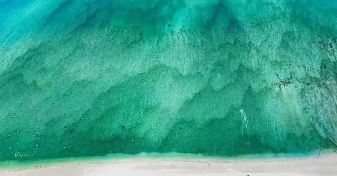 不是马代!4-5月的涠洲岛拥有玻璃海颜值巅峰期。风平浪静、海水澄澈,整片大海像被精心打磨的琉璃,蓝得纯粹、清得见底。