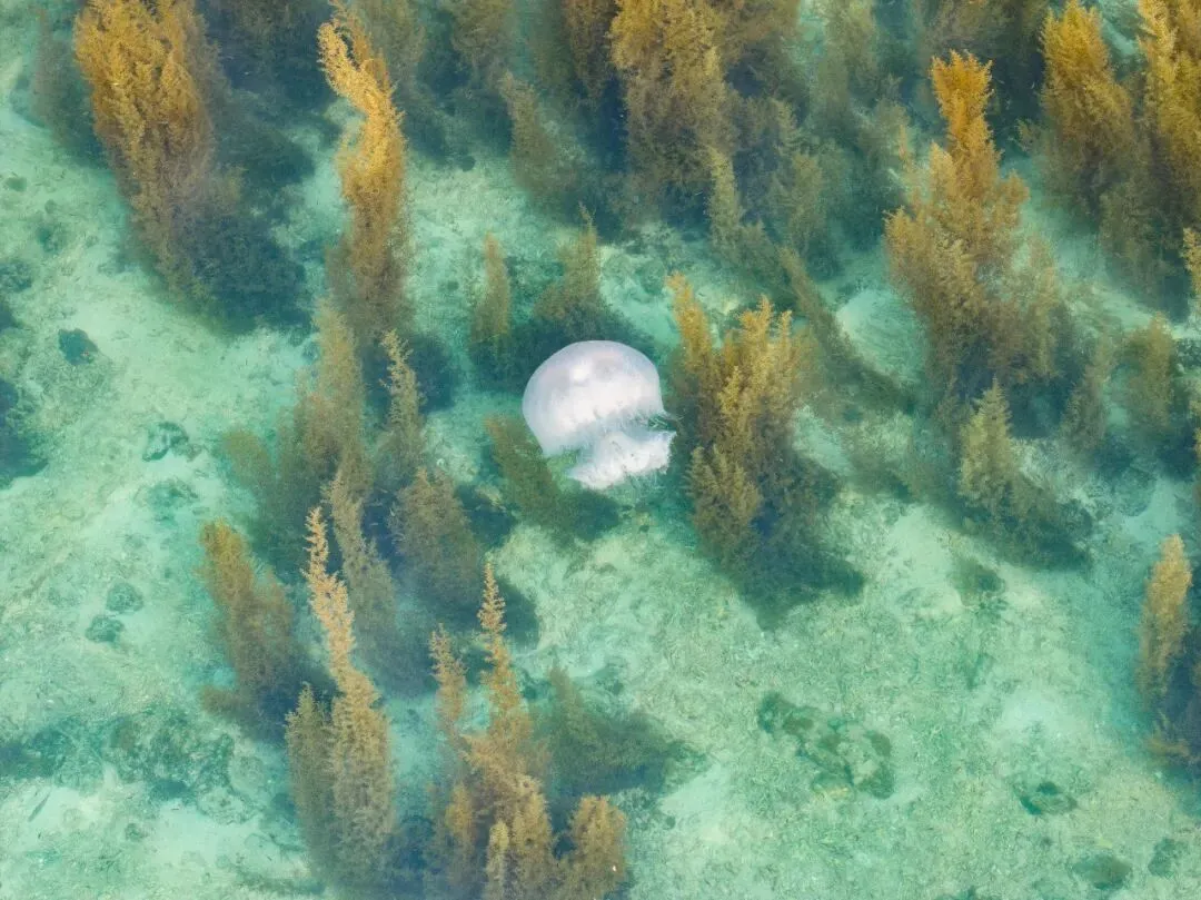 晴朗的春日,是属于涠洲岛玻璃海的季节,青蓝渐变的海水透亮见底,海水能见度达15米,潜入海底仿佛能看到火山海岛运动后的轨迹。