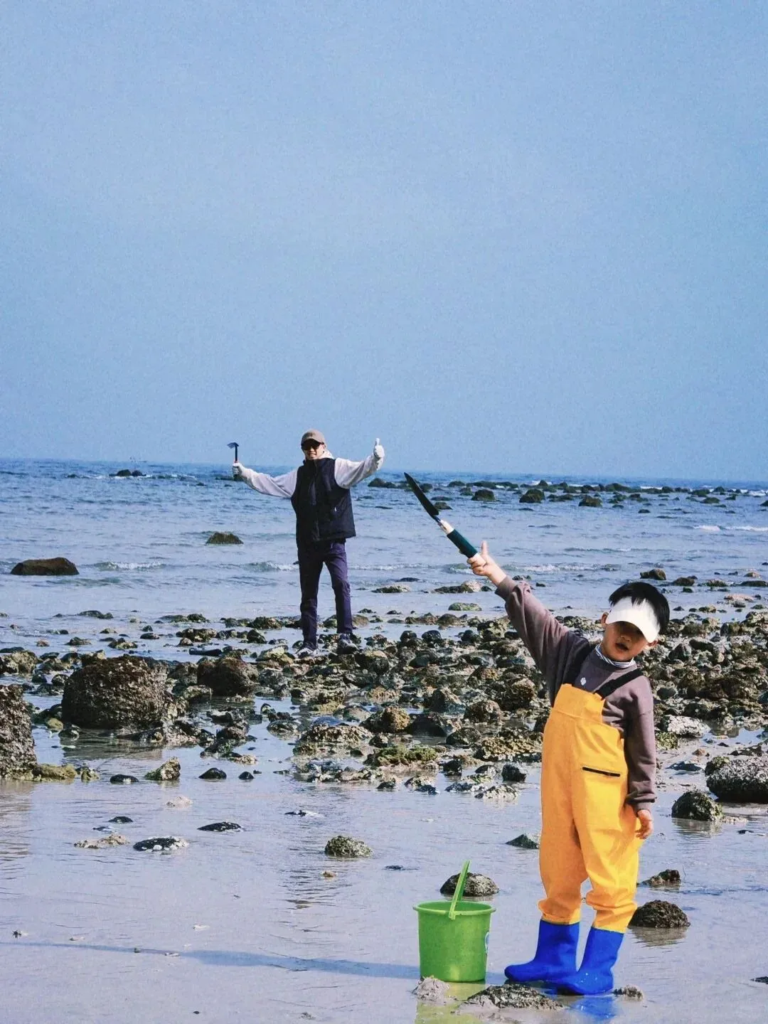 春和景明,万物焕新,正是带娃赶海的好时候!退潮后的五彩滩,礁石和滩涂间形成一道狭长的潮间带,许多来不及随海水褪去的小生物就滞留在此。
