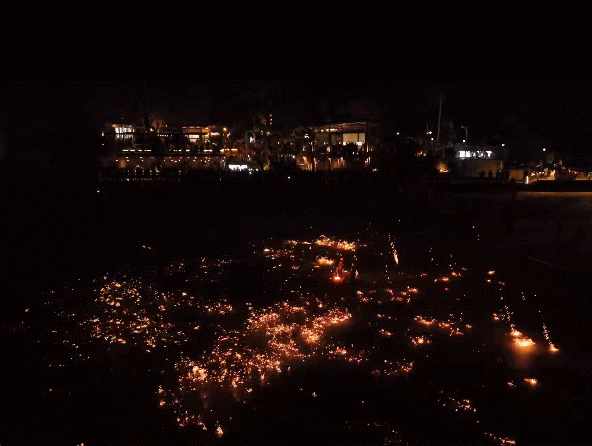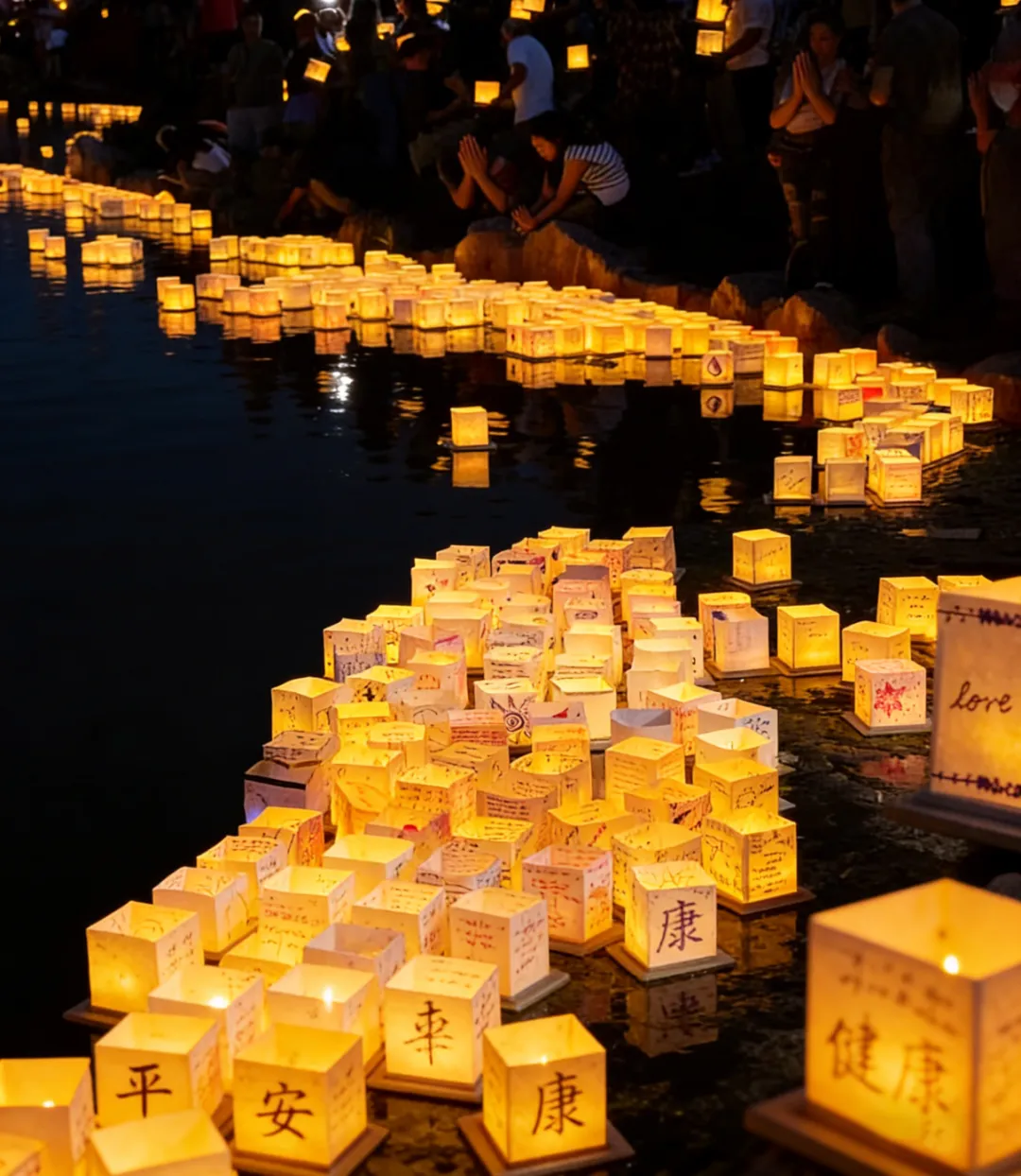 天色渐暗,海面泛起温柔灯光,一盏盏水灯载着思念与祝福缓缓漂向远方。