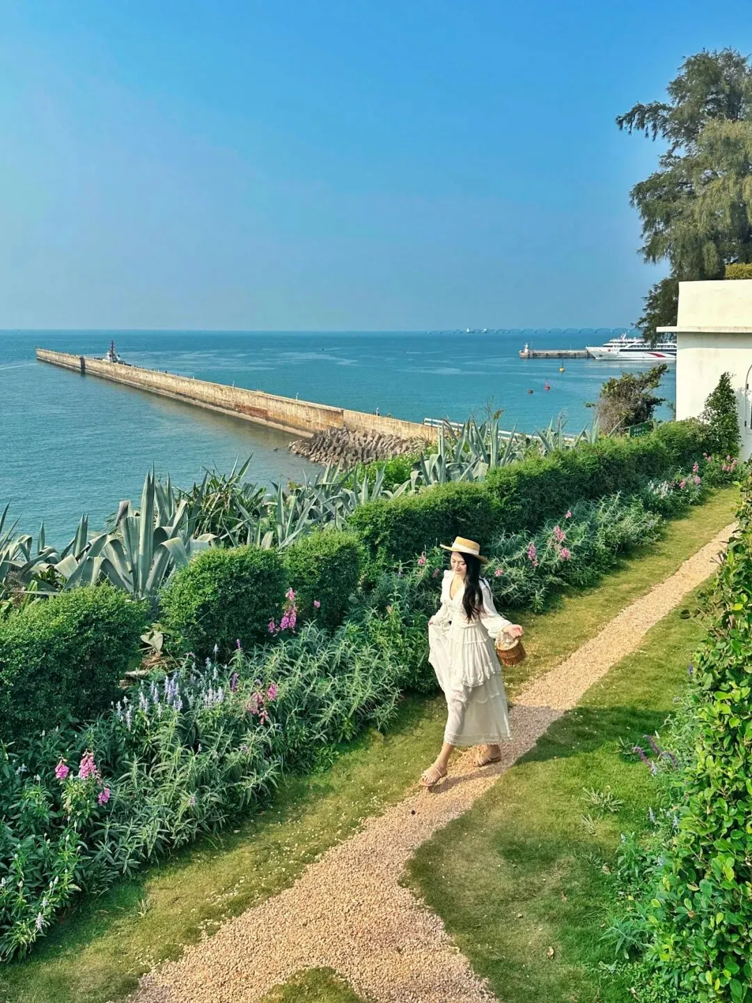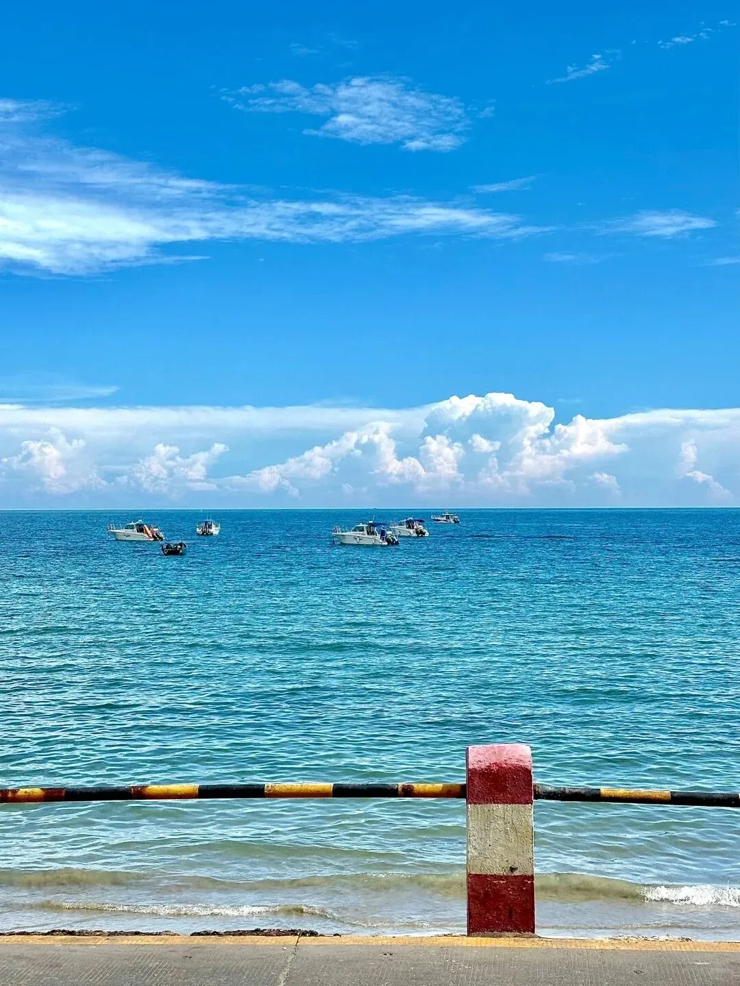出片机位少不了网红沿海公路“南湾街”!一半是无垠碧海,一半是海岛人烟,靠在红白撞色石墩前解锁一张“小垦丁”的清新大片。