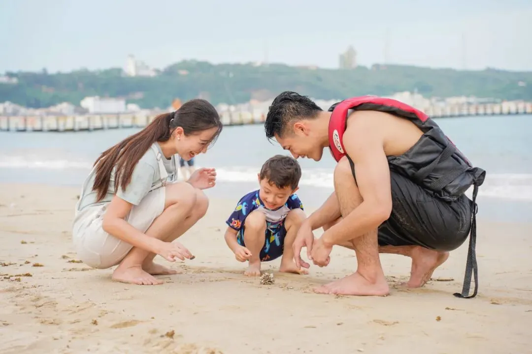 柔软沙滩任孩子肆意奔跑、堆沙砌堡,把童年的快乐藏进海浪与阳光里,轻松实现遛娃 + 玩海两不误!