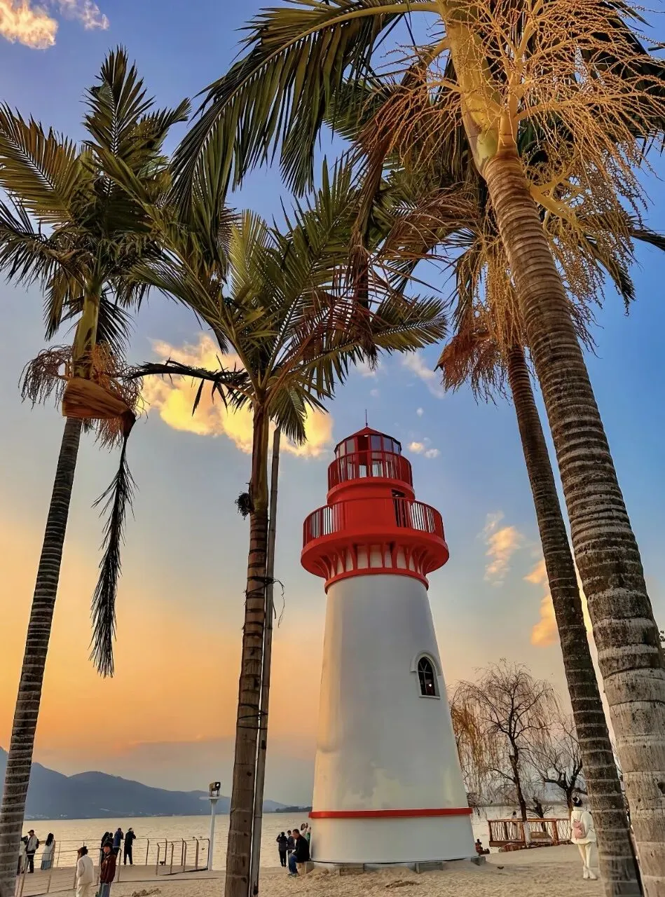 ⏰ 17:00-18:20 金鳞沙滩拍日落、灯塔、椰林(18:30光线绝)