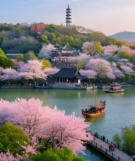 3月底的梅园,郁金香开得正艳,荷兰广场上像打翻了调色盘。而蠡园这时候桃花盛开,西部桃花坞的早桃娇艳欲滴。这两个地方离得不远,可以安排在一天。蠡园是典型的江南水乡园林,曲径通幽,特别适合穿汉服拍照。在春秋阁坐坐,远眺蠡湖秀色,发发呆,这才是旅行的意义。