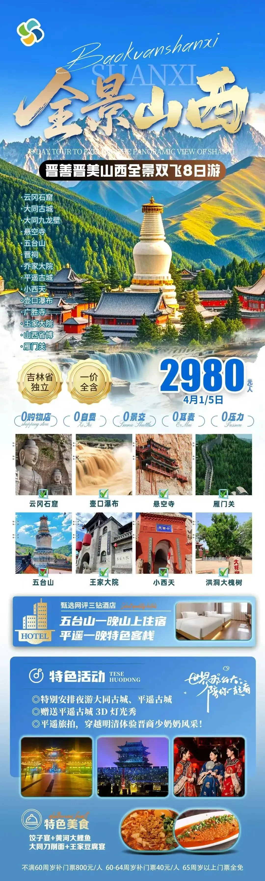 🔆 全程0购物( 超市不算购物店,部分景区内,酒店设有购物 场所,属于商业自行行为)