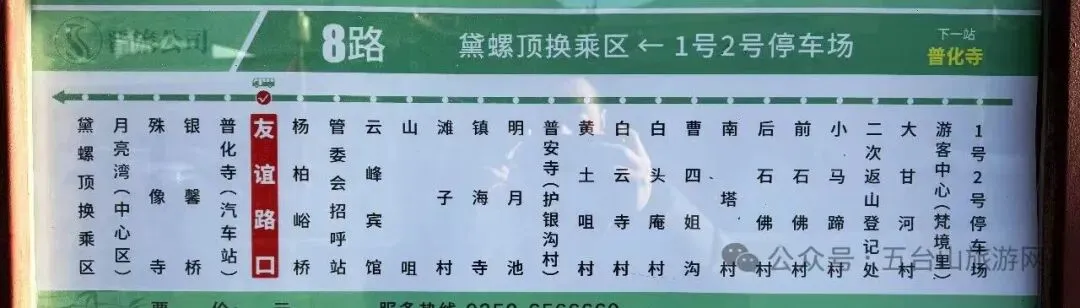 换乘入口: 自驾未预约:停南门游客中心,坐8路公交免费进景区 西门/北门进山:直接坐对应10路/11路主线,直达核心区 核心区穿梭: 五爷庙 ↔殊像寺 ↔黛螺顶 ↔广化寺:8路/9路/12路无缝衔接,不用换乘 逛寺庙:在殊像寺、黛螺顶、普化寺等大站下车,步行就能到周边寺庙,很方便 智慧查询(避免白等车):担心不知道如何坐公交的必看 微信搜“智慧五台山公交”小程序,可查公交实时位置、到站时间,超级省心 各公交站点有智慧导览大屏,也能显示车辆动态,一目了然
