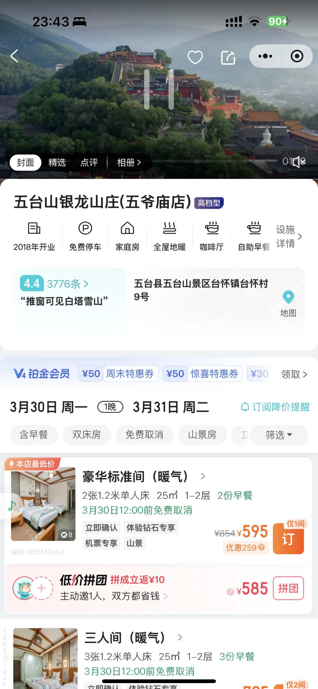 你看这家酒店就不用坐公交,走路就能到五爷庙,离殊像寺也很近。用这样的方式去选酒店,哪怕你人还没到五台山,也能订到最方便的酒店。 提醒一句:越靠近核心寺庙,房费越贵,大家根据自己的预算选择就好。 📌 选住宿原则:要么住景区内,要么住景区外,各有优势,按需选 为什么景区外的住宿我只推荐这两家民宿? 有两个原因: 1、房费全额返消费券。相当于住不花钱。这是我推荐的重要原因,这也是全五台山仅有的三家返券酒店之一。而名山丽水民宿的价格又是三家中最便宜的一家。所以值得推荐。 2、包接送。免费接送(早上送景区南门,晚上在南门处接回民宿),到了景区再坐免费公交,大约半小时就能到五爷庙等核心寺庙。 注意:在携程、去哪儿等平台订这两家民宿,是没有返券福利的,只有通过【如是心官方商城】平台订房才有,别订错了! 👇👇 请进入【如是心官方商城】查看👇👇