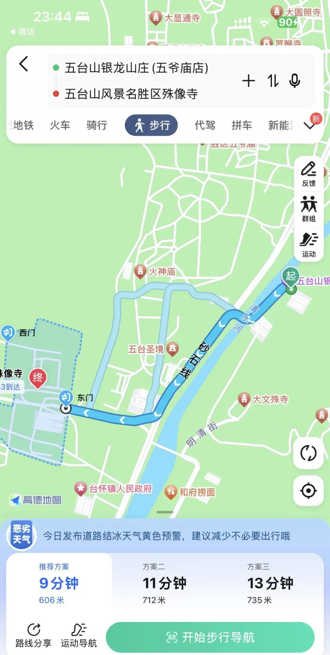 第一次去的朋友,大概率会担心:选的酒店离寺庙远不远?坐车方便吗? 超实用选酒店方法(亲测实用): 通过【去哪儿网】【携程网】等平台,先浏览心仪的酒店,点进酒店详情页,点击酒店地址进入高德导航,再把目的地设为核心寺庙(比如五爷庙、殊像寺),就能清晰查到酒店与核心景点的距离、坐车是否方便、要不要换乘、路上耗时多久,一目了然,再也不用瞎猜!
