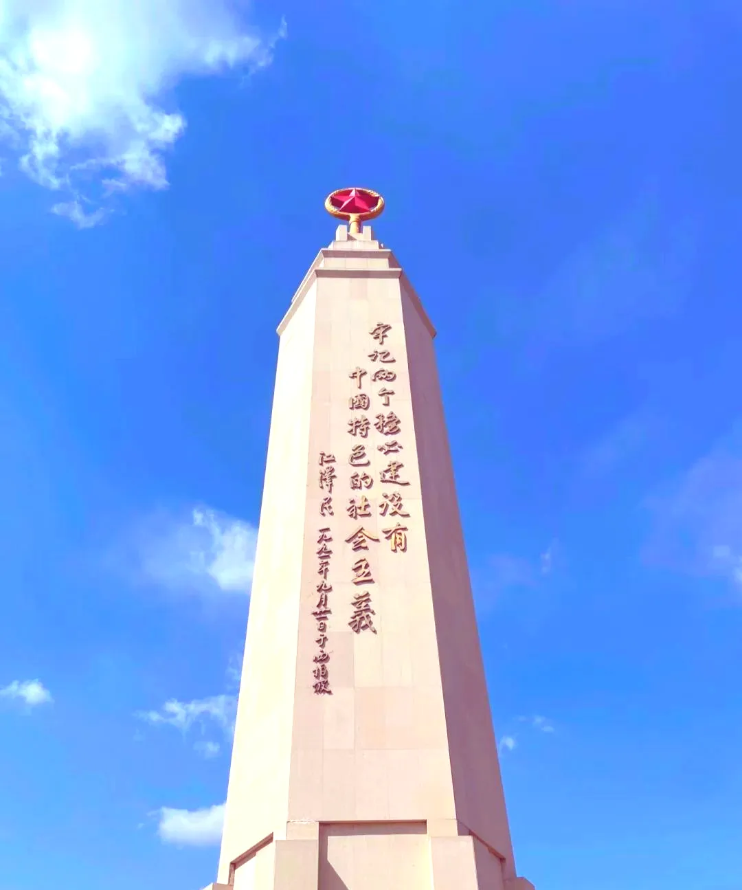 西柏坡纪念碑:碑名为邓小平同志手书,碑文为江泽民同志题词。