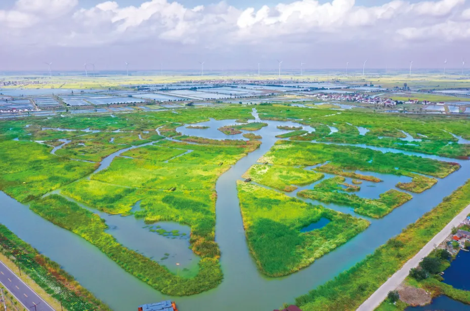 春夏季节,芦苇刚刚开始拔节,满目青绿,一派生机勃勃的景象。