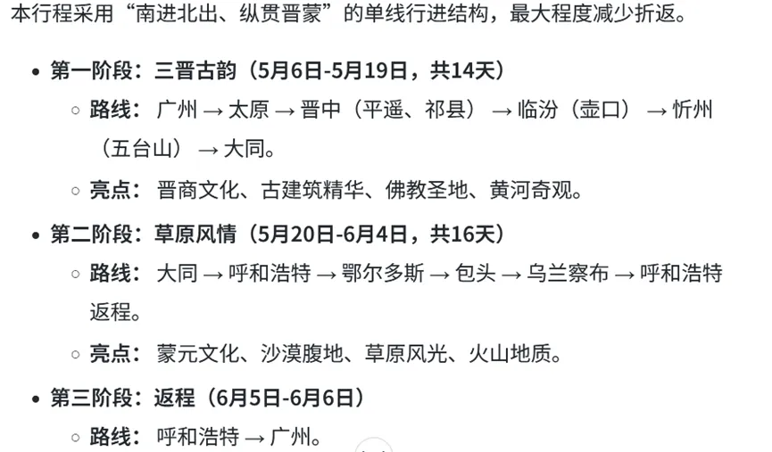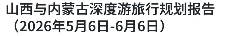 (1)山西与内蒙古深度游旅行规划报告(2026年5月6日-6月6日)